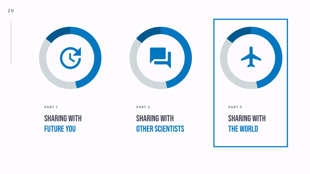 - We’ll then move on to sharing with other scientists. Scientists are more likely to tolerate some slightly complicated steps if it means they get to use your research on their own.